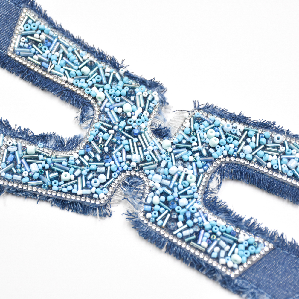 China Manufactures Ladies Shoe Upper Denim Fabric Braided Strap Woven Women Sandals Upper Vamp