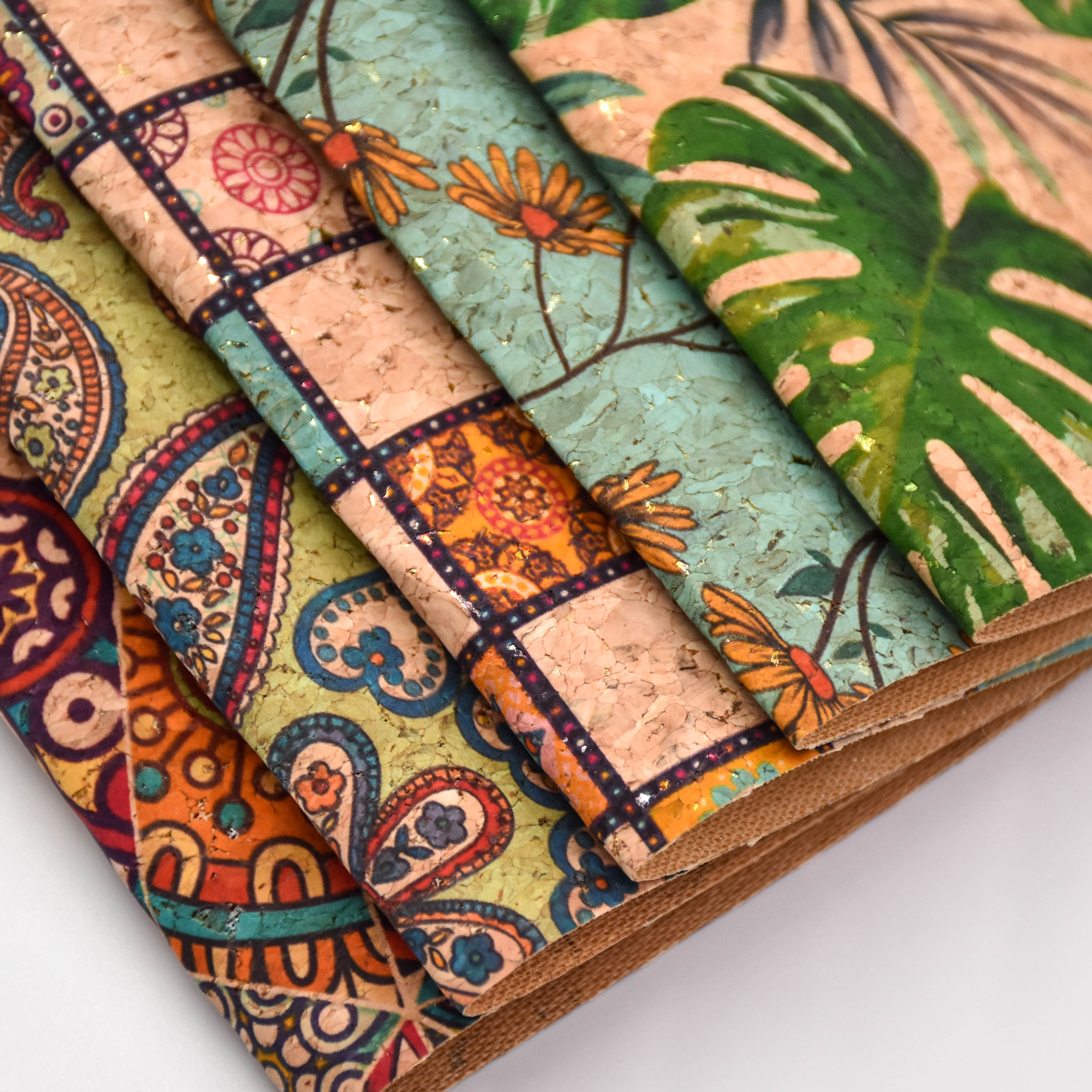 wholesale faux leather fabric Printed cork PU leather